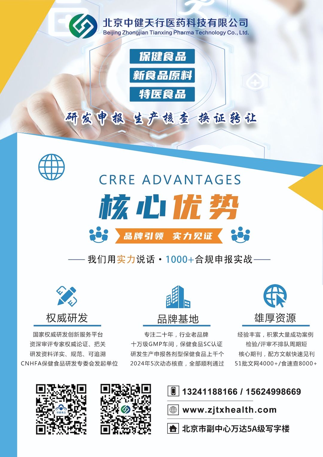 北京中健天行醫藥科技有限公司(ZJTX PHARMA)成立于2013年,深耕保健食品、“三新”食品、特醫食品研發申報十余載,先后獲國家高新技術企業、北京市科技型中小企業、ISO9001體系認證、北京市質量管理先進集體等資質榮譽。我們始終以"注冊備案精準化、功能評價科學化、合規體系標準化"為核心競爭力,在保健食品及新食品原料合規領域成果豐碩,累計助力超1000家企業的產品合規上市,新法規實施以來已成功申報100余項保健食品新產品,完成20多個產品的動態核查,申報及核查數量均居全國前列,同時雙無換證率先獲國家總局受理,新功能研發完成3項臨床研究,并助力磷蝦油、牛大力粉、紅花苗、麥角硫因等數十種新食品原料推進合規進程,以實戰經驗鋪就高效合規的申報通路。我們可為企業提供涵蓋產品立項、研發生產、注冊檢驗、臨床評價、合規申報、動態核查及成果轉化的全鏈條一站式解決方案,誠邀廣大企業攜手同行,共拓合規發展新藍海!
