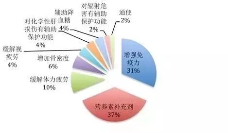 據統計,2016年5月CFDA公布批準國產保健食品49個,43個首次批準產品,6個技術轉讓產品。其中,營養素補充劑19個,30個功能性產品包括增強免疫力16個,緩解體力疲勞5個,增加骨密度3個,緩解視疲勞、對化學性肝損傷有輔助保護功能、輔助降血糖各2個,對輻射危害有輔助保護功能、通便各1個。