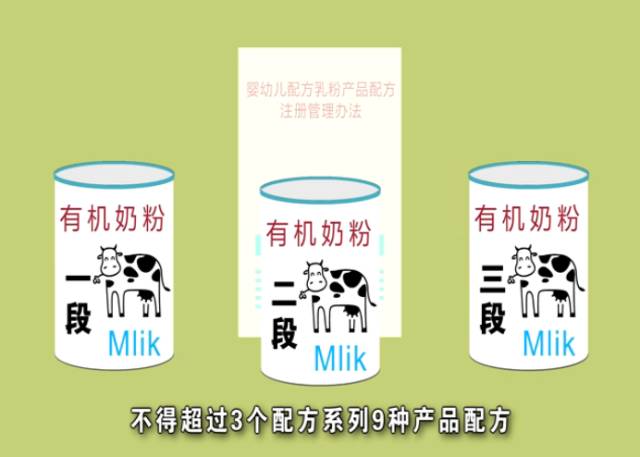 第九條 同一企業(yè)申請注冊兩個以上同年齡段產(chǎn)品配方時,產(chǎn)品配方之間應(yīng)當(dāng)有明顯差異,并經(jīng)科學(xué)證實。每個企業(yè)原則上不得超過3個配方系列9種產(chǎn)品配方,每個配方系列包括嬰兒配方乳粉(0—6月齡,1段)、較大嬰兒配方乳粉(6—12月齡,2段)、幼兒配方乳粉(12—36月齡,3段)。