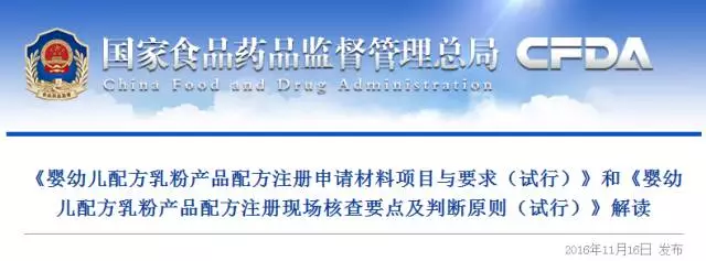 根據《中華人民共和國食品安全法》、《嬰幼兒配方乳粉產品配方注冊管理辦法》等法律法規,食品藥品監管總局組織起草了《申請材料項目與要求》和《現場核查要點及判斷原則》,于2016年8月9日至9月10日公開征求社會意見,經反復討論修改完善后,于10月29日發布。