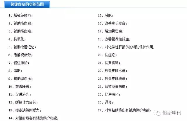 正式提出“保健功能目錄”概念,醞釀配套新法改革。保健功能目錄是指經系統評價和驗證,具有明確的評價方法和判定標準的允許保健食品聲稱的保健功能信息列表。保健功能目錄包括保健功能名稱及說明等內容。